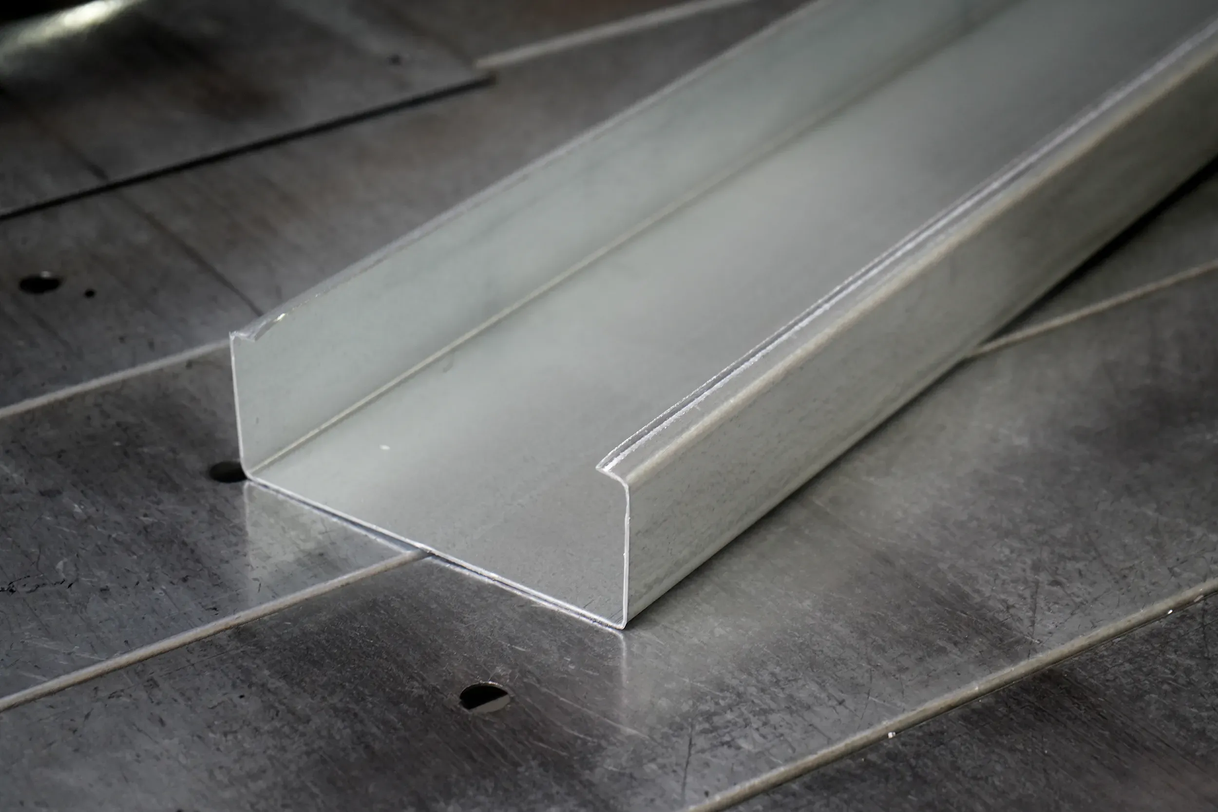 Прочность. Специальная конструкция позволяет увеличить жесткость и прочность профиля, сохраняя малый вес изделия. По своей жесткости стальной профиль превосходит тяжелые стальные балки;